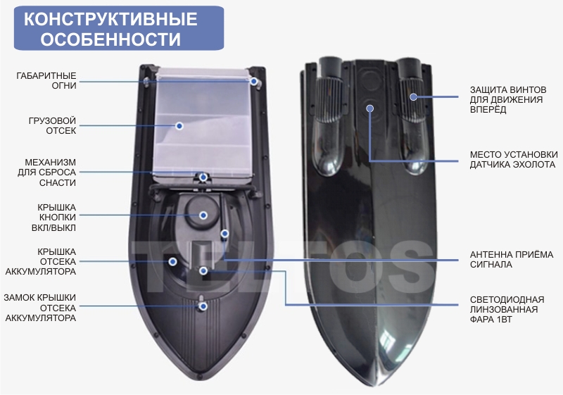 Конструкция продумана до мелочей. Таким списком возможностей, только одного отсека, может похвастать не каждый производитель. На видео ниже, специально для Вас, мы продемонстрировали работу отсека сброса и визуально можно оценить ходовые качества кораблика при сильном ветре.