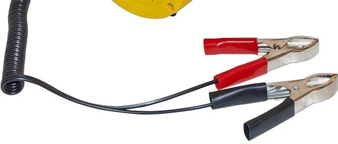 Насос оснащен проводами с зажимами-"крокодилами" для подключения к аккумуляторной батарее автомобиля