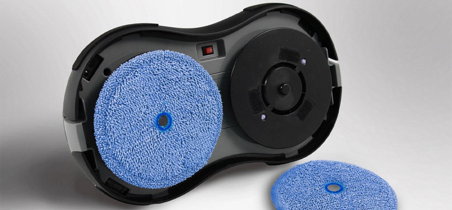 Устройство передвигается при помощи двух попеременно вращающихся платформ, на которые надеты специальные чистящие салфетки из микрофибры. Они позволяют аккуратно, но при этом тщательно очищать с пола любые загрязнения, даже те, которые уже успели засохнуть. Мягкая ткань не царапает пол, что позволяет использовать робота на различных покрытиях.